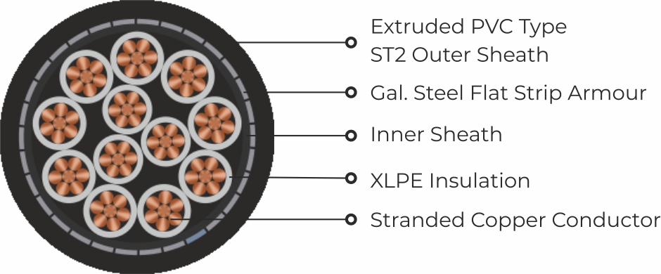 1.5 2XFY MC, Stranded/solid copper conductor, XLPE insulated, PVC inner sheathed, Galvanised Steel strip armour and PVC sheathed