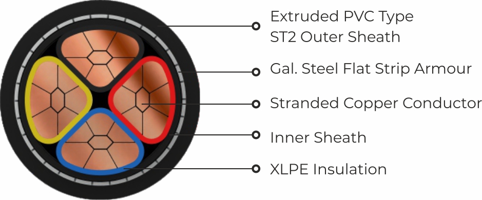2XFY MC-3.5, Stranded compacted copper conductor, XLPE insulated, PVC inner sheathed, Galvanised Steel Flat strip armour and