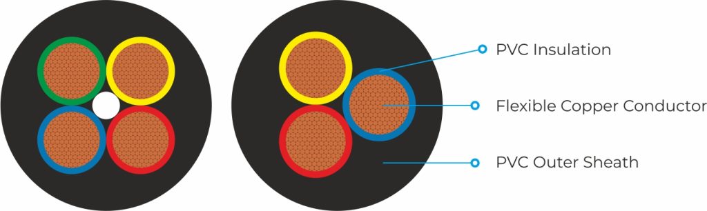 2 Core – Red & Black3 Core – Red, Black, Green or Red, Yellow and Blue4 Core – Red, Yellow, Blue and Green or Black